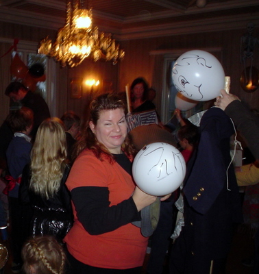 Our 2009 Hallowe'en party was held on Sunday, November 1, as usual at Disen gård in Oslo. For the feature attraction we brought back Davido, who delighted us with an amusing and amazing magic show. As always, there were plenty of games and activities for the kids, including mummy wrap, hanging donuts, pumpkin bowling, and the ever-popular scarecrow-building game.